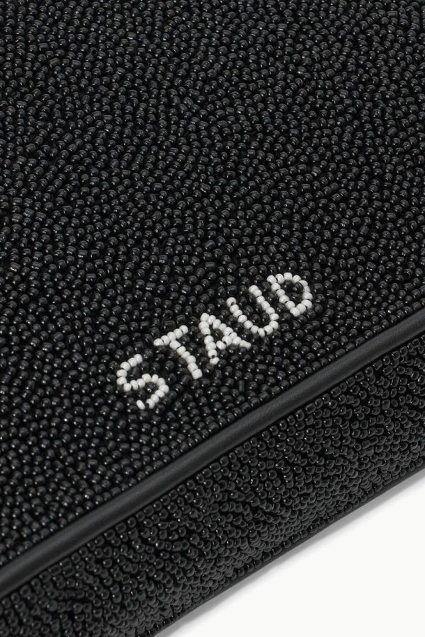Introducing the stunning Tommy for Fall collection. This exquisite hand-beaded shoulder bag features sophisticated vegan leather piping for a polished finish. The contemporary design showcases a completely beaded exterior adorned with shimmering mirrored paillettes that catch the light beautifully, complemented by a secure magnetic snap closure for easy access.