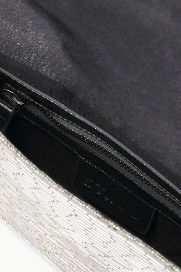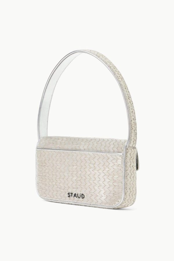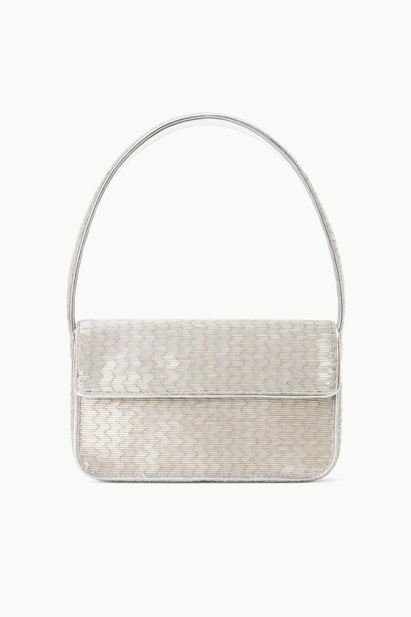 Introducing the stunning Tommy for Fall collection. This exquisite hand-beaded shoulder bag features sophisticated vegan leather piping for a luxurious touch. The contemporary design showcases a captivating monochromatic bugle bead pattern with a secure magnetic snap closure for effortless access.
