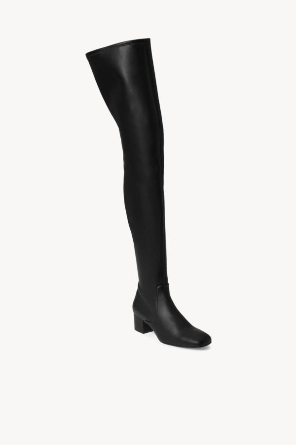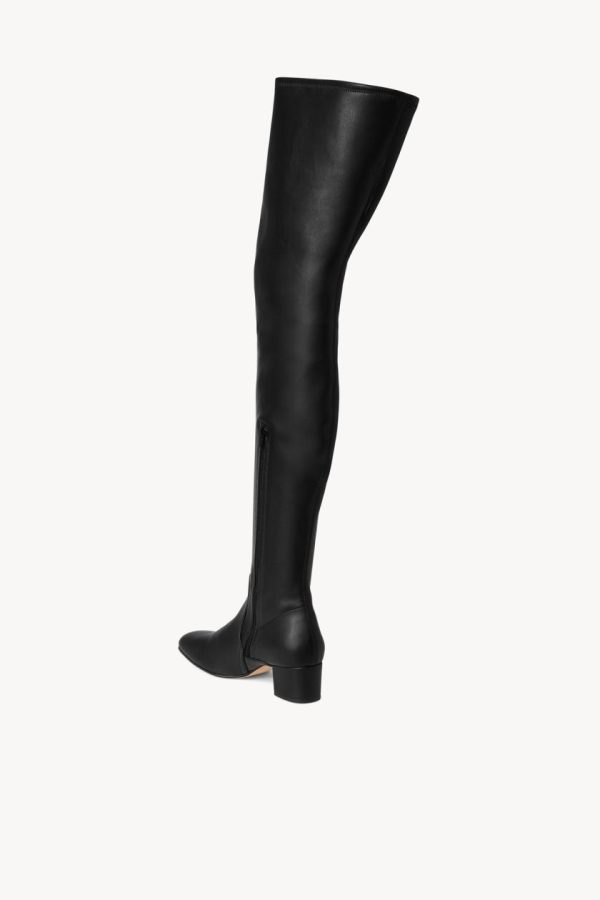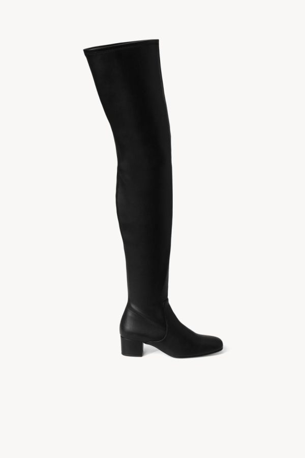 Meet the Aimee Boot – your new go-to pull-on over-the-knee style crafted from premium stretch vegan leather. This sophisticated design features a comfortable low heel, modern rounded toe, and convenient ankle zipper for easy wear. Please note this style does have a cow leather heel.