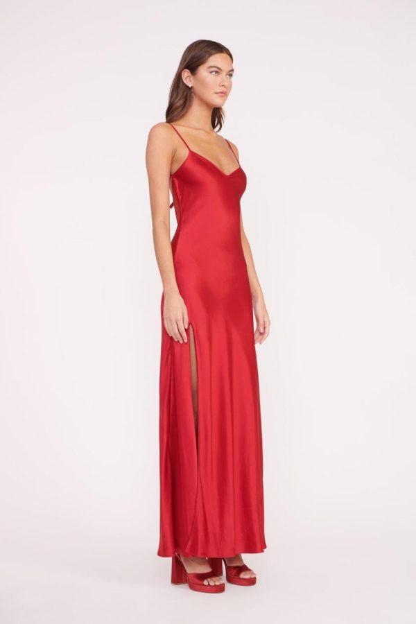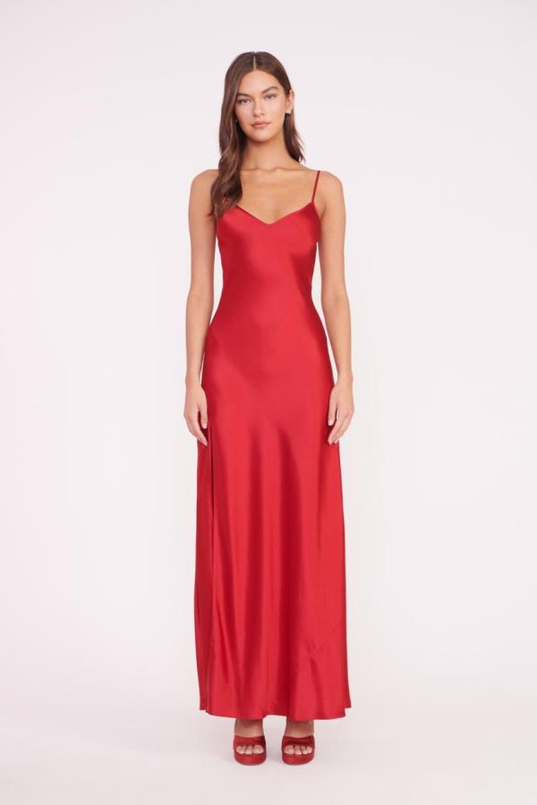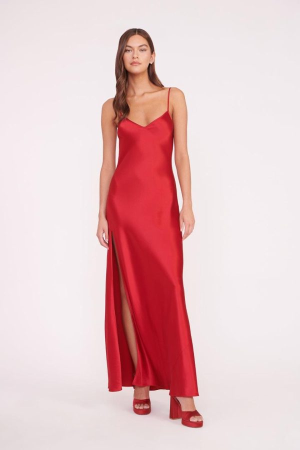 Experience effortless elegance with our bias-cut slip gown crafted from luxurious flowing satin fabric. The Alexa Dress showcases a flattering V-neckline, dramatic thigh-high side slit, and a beautifully semi-fitted silhouette that drapes perfectly.