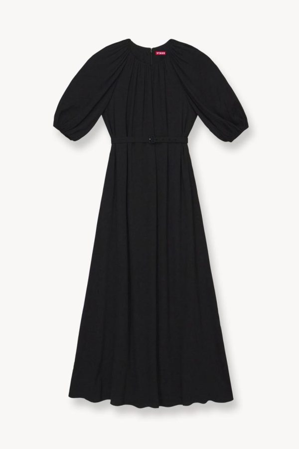 Experience effortless elegance with our fluid a-line silhouette, designed for all-day comfort with chic short balloon sleeves and a customizable adjustable waist belt for the perfect fit.