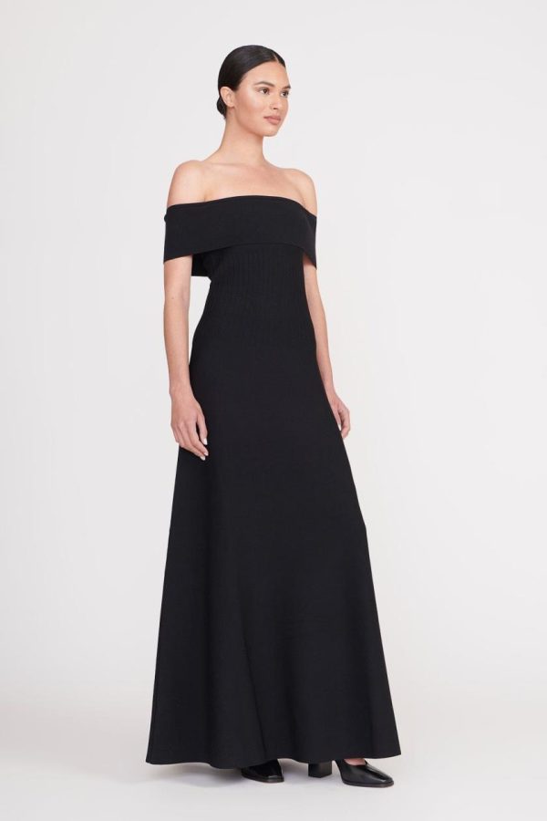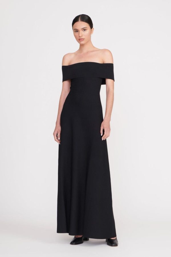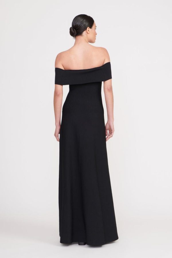 Experience effortless sophistication with our sleek maxi dress crafted from premium compact knit fabric. This stunning off-the-shoulder design features a flattering A-line silhouette that drapes beautifully. The Artistry Dress delivers a perfectly contoured fit with exquisite ottoman stitch detailing at the waist, creating your new essential little black dress for any special occasion.