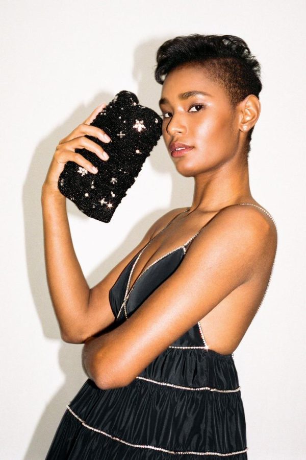 Elevate your evening ensemble with this exquisitely hand-beaded interpretation of our signature silhouette. The Beaded Bean bag showcases a captivating rhinestone constellation pattern that catches the light beautifully, making it the perfect statement piece for special occasions. This elegant design features a dazzling rhinestone crescent moon detail on the back for added celestial charm.