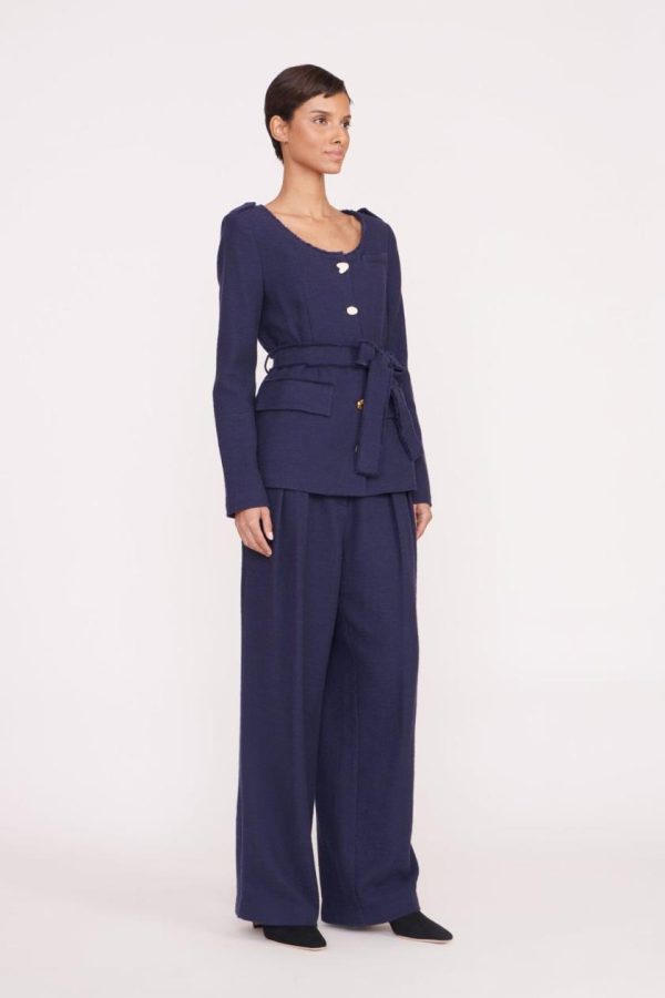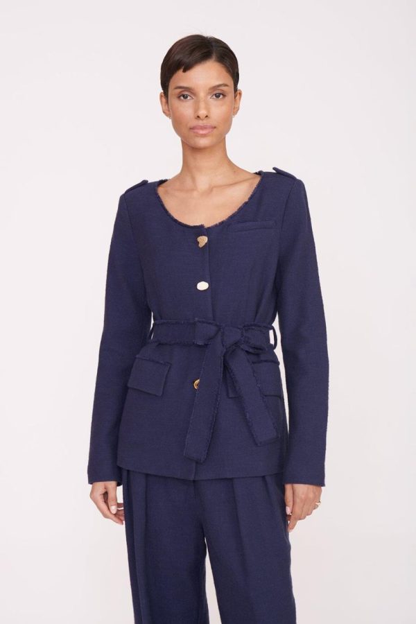 Elevate your professional wardrobe with this sophisticated scoop neck blazer featuring distinctive mismatched buttons and an elegant waist tie. Crafted from premium cotton suiting fabric, this versatile piece creates a polished silhouette perfect for office wear or elevated casual occasions. Complete your look by pairing the Charles Blazer with the matching Luisa Pant or Tour Skirt for a perfectly coordinated ensemble.
