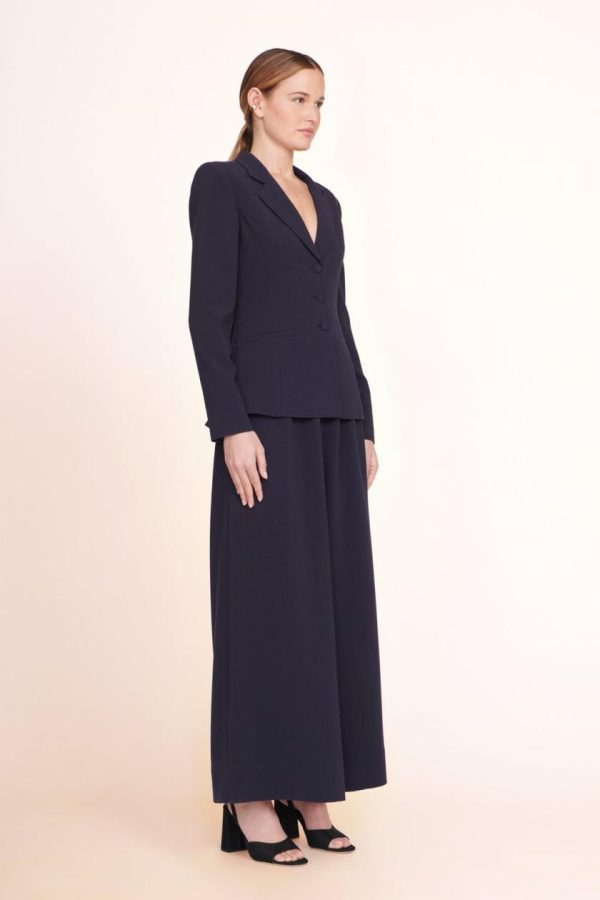 Elevate your wardrobe with these fashion-forward cropped wide leg pants featuring elegant corset-inspired seaming along a flattering high waistline. The Caleb Pant is expertly crafted from a sophisticated crepe fabric that drapes beautifully, complete with a discreet hidden zipper closure at the side for seamless styling. Perfect for creating polished suiting ensembles when paired with the Carson Blazer.