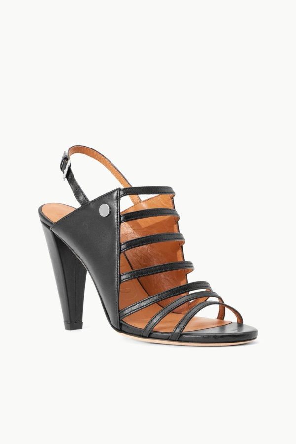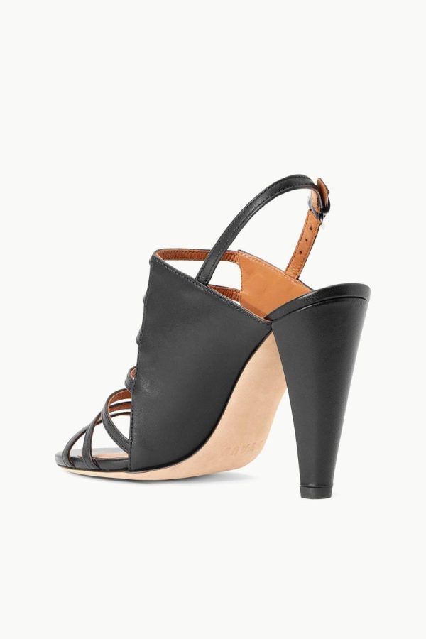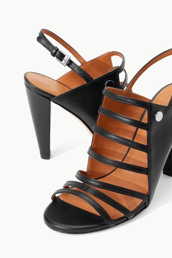 Elevate your style with the sophisticated Emma cage heel, featuring a contemporary square toe and secure adjustable heel strap for customized comfort.