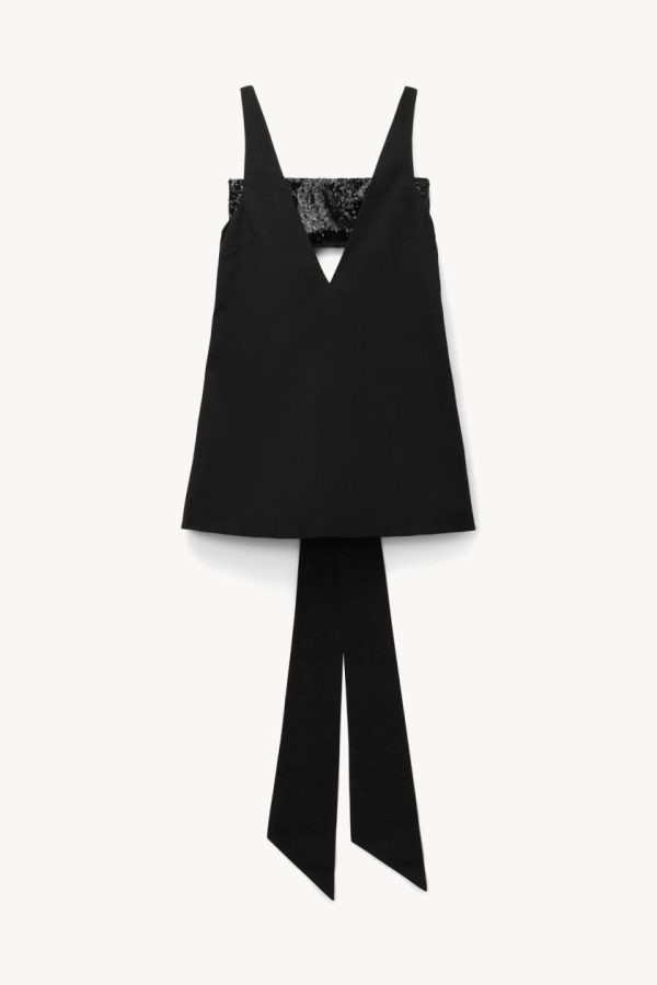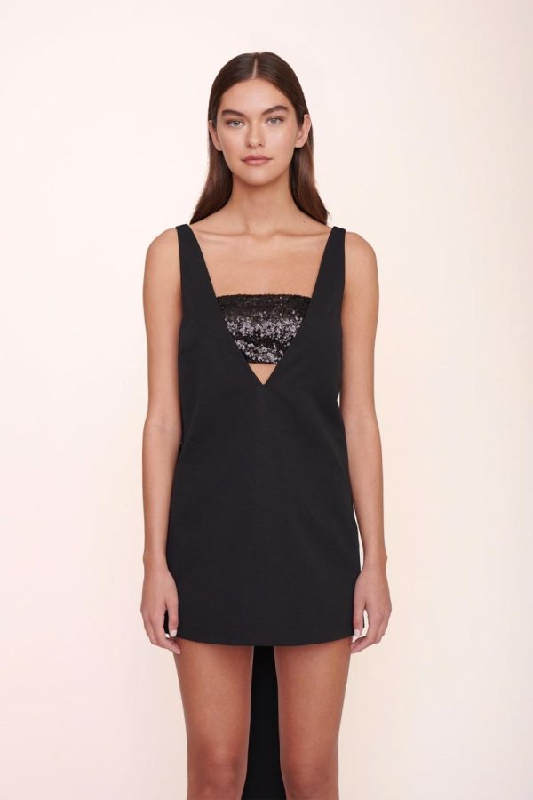 Make a stunning statement in the Irie dress, featuring a dramatic plunging v-neckline and eye-catching mini silhouette. The show-stopping large bow detail in the back adds unforgettable elegance to your look, while the removable exposed sequin bandeau offers versatile styling options.