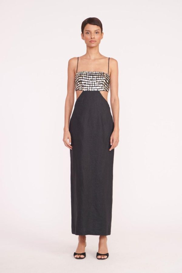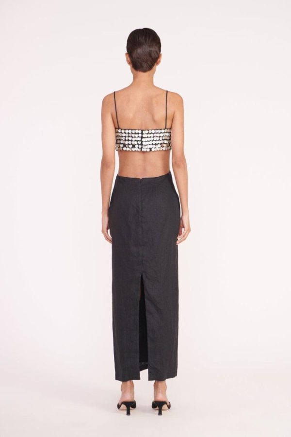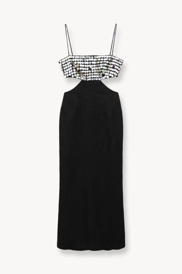 Discover the effortlessly chic Jada Dress, an ankle-length linen column silhouette designed to transition seamlessly from daytime elegance to evening sophistication. Featuring delicate spaghetti straps and a beautifully crafted mother of pearl shell embellished bodice, this versatile piece pairs perfectly with both casual sandals and dressy heels for your warm-weather wardrobe.