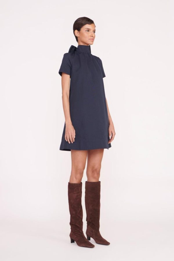 Elevate your occasion wardrobe with the Mini Ilana dress, featuring a sophisticated high neckline and elegant scoop back with a functional self-tie bow collar. Crafted from premium grosgrain fabric, this dress delivers exceptional structure and becomes an instant statement piece for any special event.