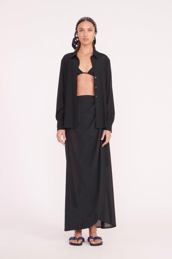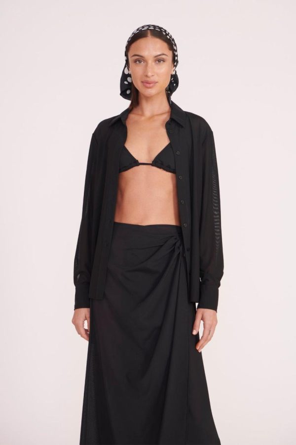 Elevate your swimwear style with this versatile coverup that masterfully reimagines the classic button-down shirt. The Miriam Top features a sleek power mesh fabric that drapes beautifully and transitions effortlessly from beach to brunch.