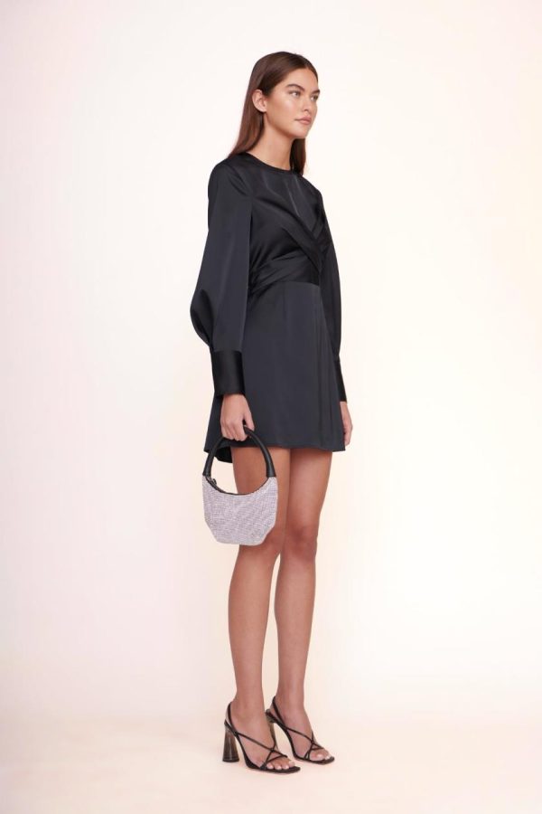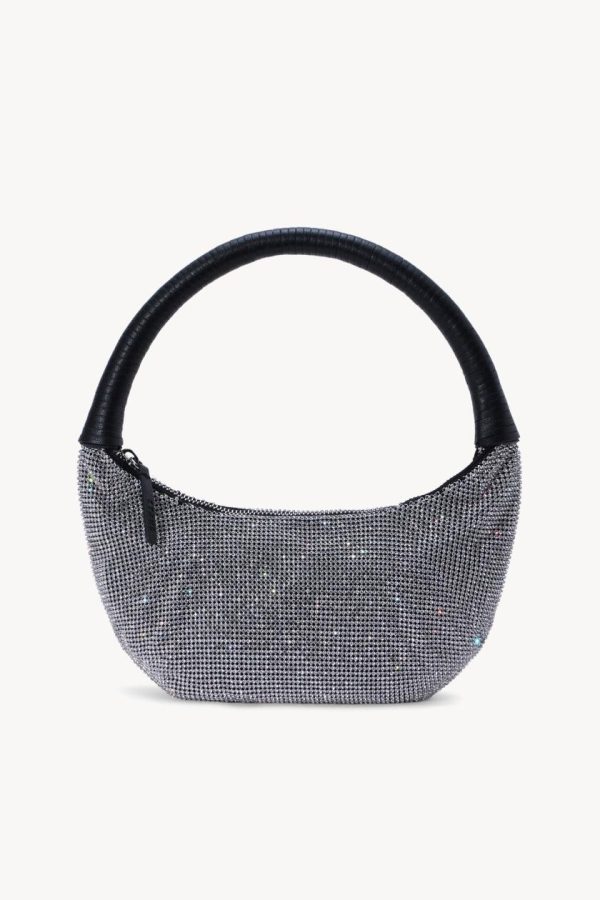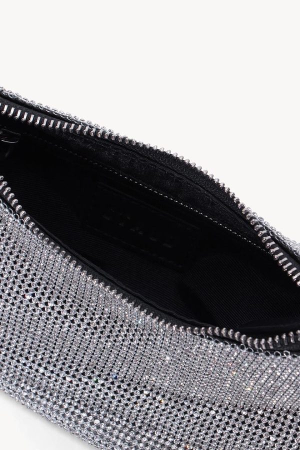Discover the stunning Pepper Crystal Bag, an exquisite rhinestone-adorned shoulder bag featuring an elegantly wrapped vegan leather handle. This sophisticated design combines security with organization through its secure zip closure and convenient inner zip pouch.