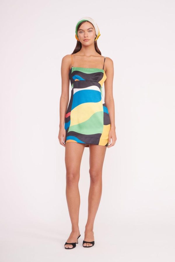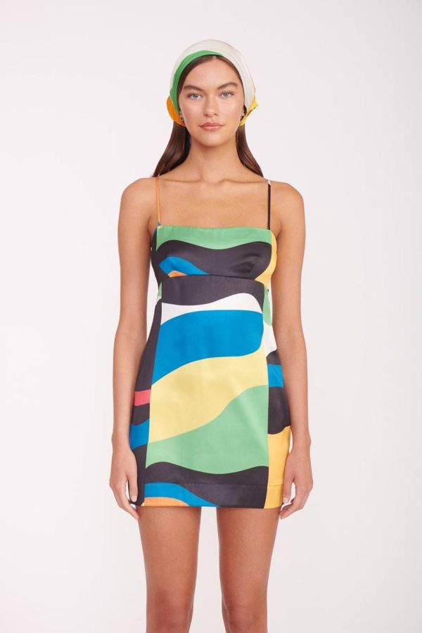 Introducing the Remington Dress, your new go-to mini dress for summer featuring flattering adjustable spaghetti straps, an empire waist that accentuates your silhouette, and a discreet hidden zipper closure, all showcased in our stunning seasonal Marble Wave print.