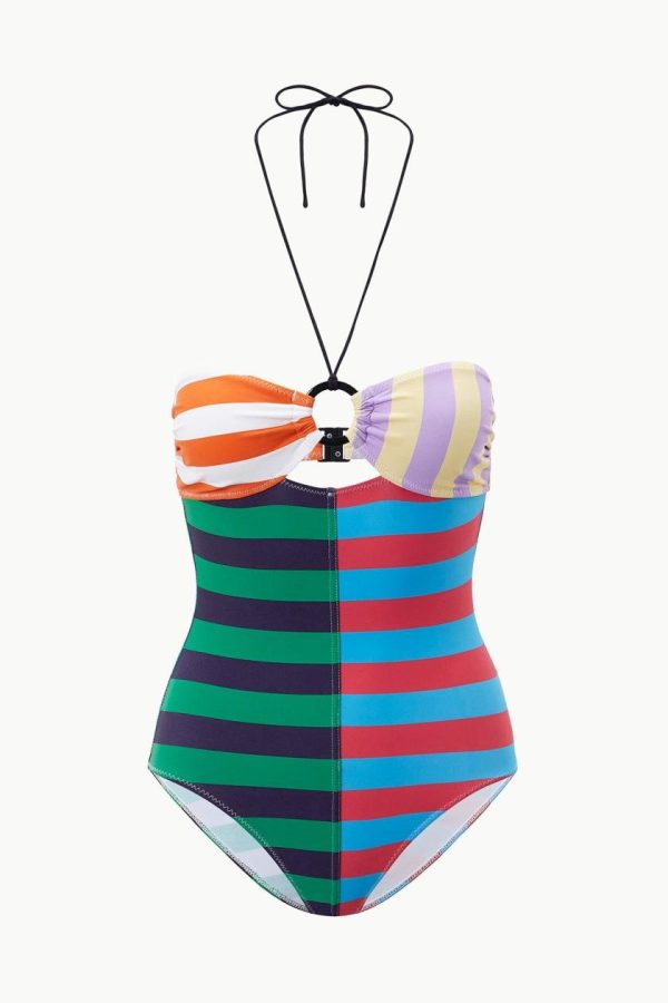 Women ACE RING ONE PIECE CABANA STRIPE MULTI | STAUD One Pieces