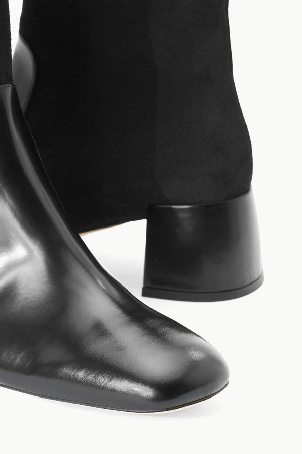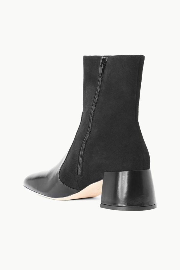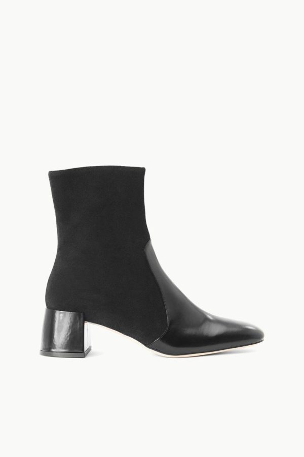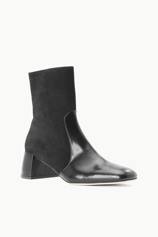 A Chelsea-style boot with short block heel, the Andy Ankle Boot is made of contrasting gloss leather and suede. This style features a side zipper for ease of use.