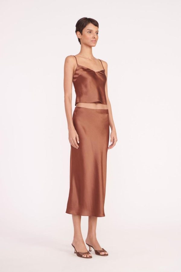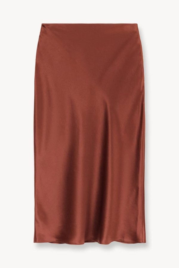 A bias cut, slim fit skirt that hits at the calf, the Angela is constructed out of a shiny satin fabric.