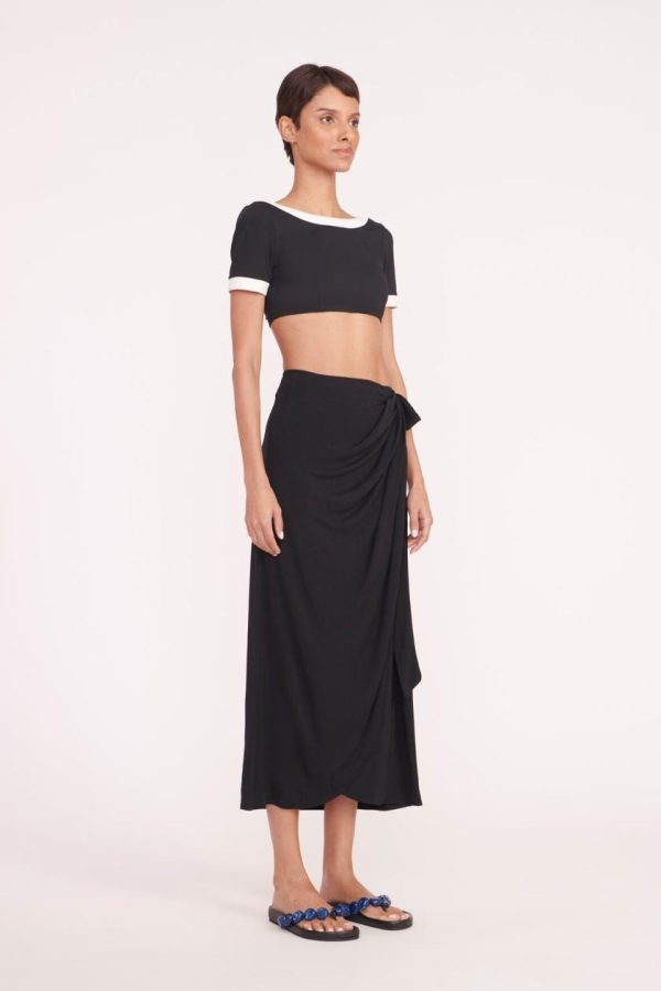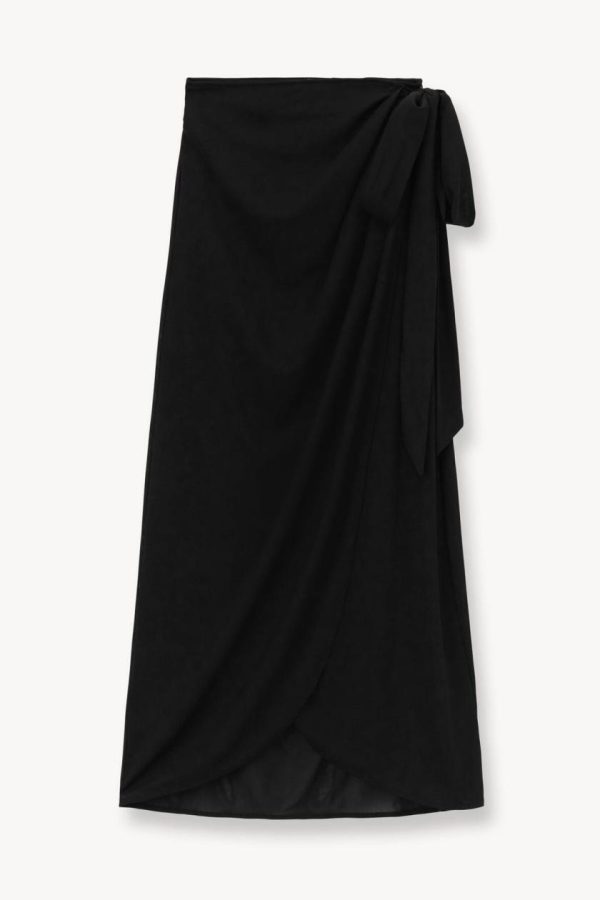 The Angelica coverup skirt is a maxi draped skirt in black mesh, that ties on the hip. This skirt is meant to be worn as a swim coverup that pairs back to our swim collection for the beach and beyond.