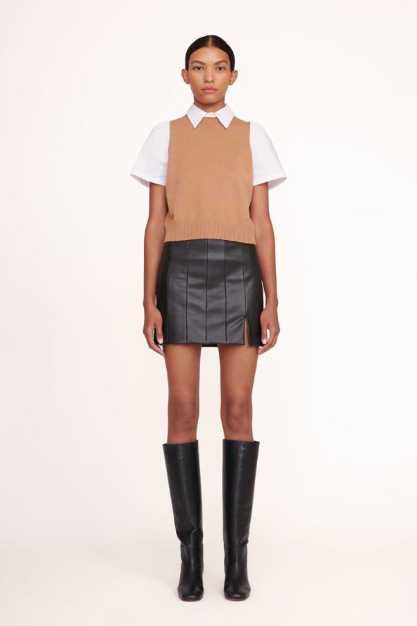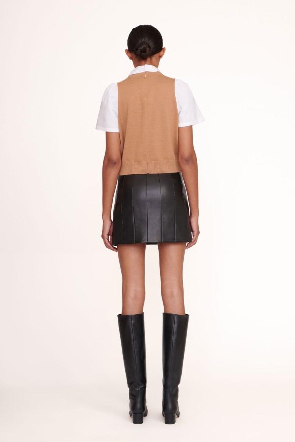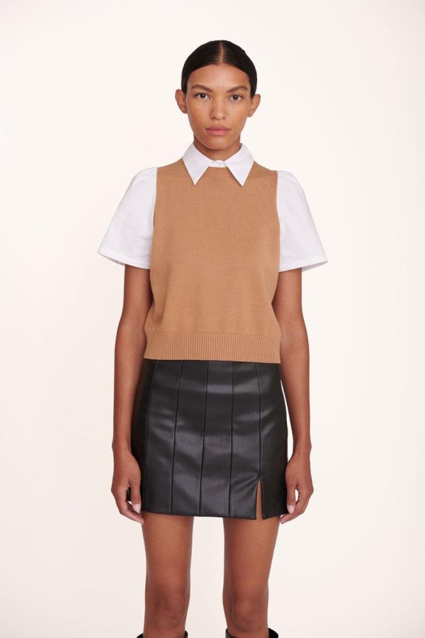 The Arya Top is a fine knit top with a short woven sleeve and removable collar.