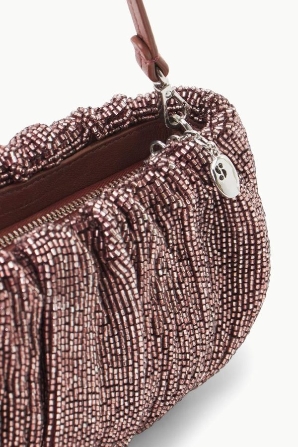 A hand-beaded update to our signature ruched bag. The Beaded Bean is a convertible bag that can be worn as a shoulder bag, wristlet or clutch.