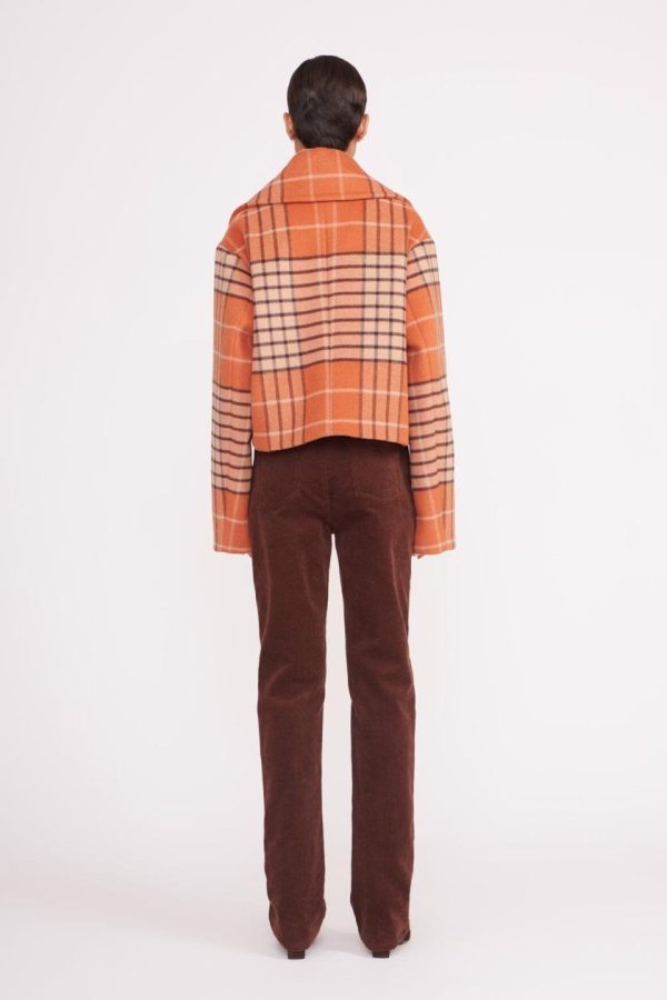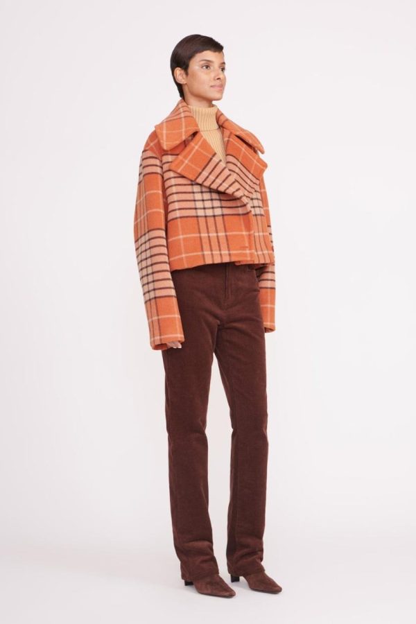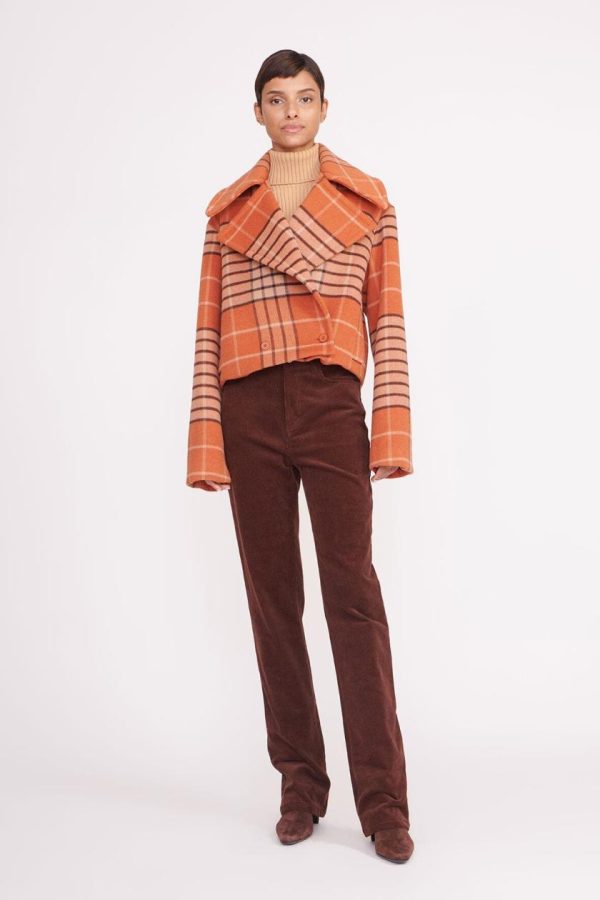 The Carver Cropped Coat is a short wool coat with an exaggerated collar and lapels.