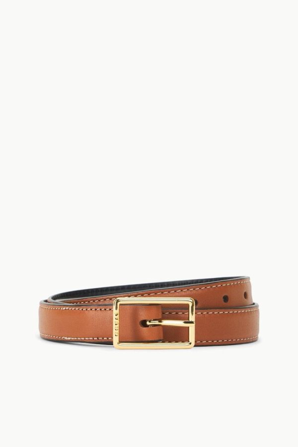 A classic belt in tan leather with a polished buckle; pair it with our Luisa Pant for a tailored look.