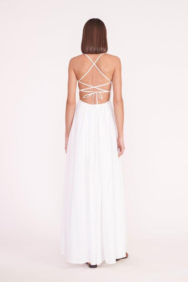 The Courtney Dress is a maxi dress crafted from cotton voile, perfect for day to night Summer dressing. The dress is fitted throughout the bodice and features spaghetti straps with a lace-up open back with an a-line skirt.