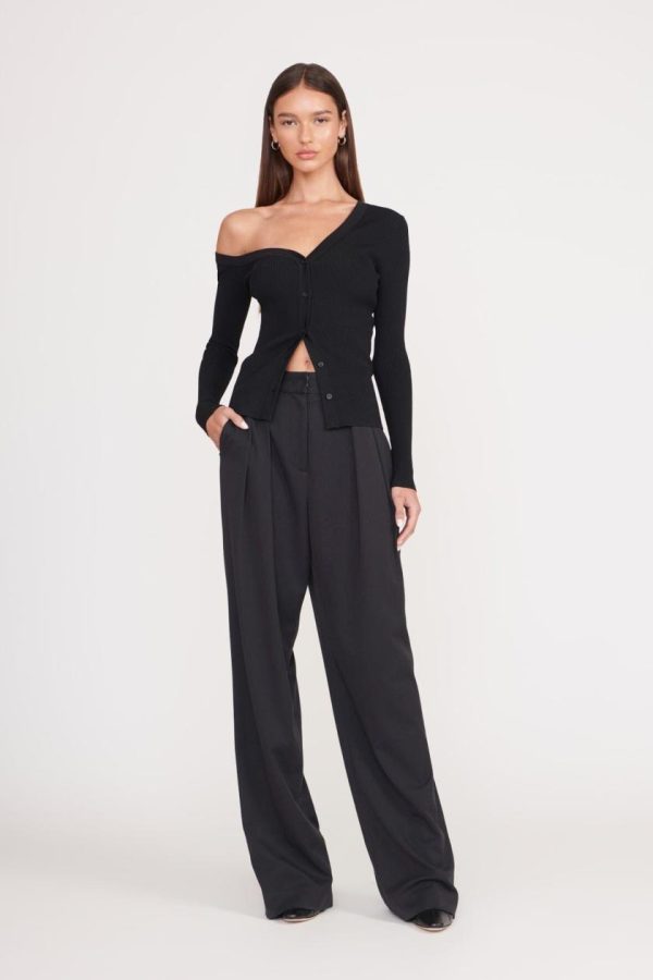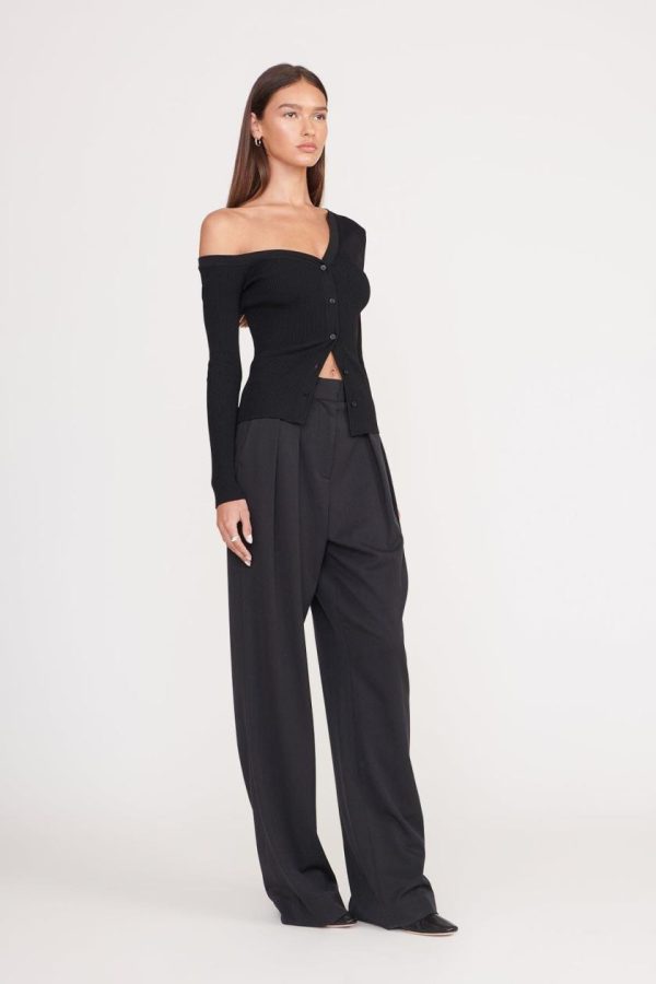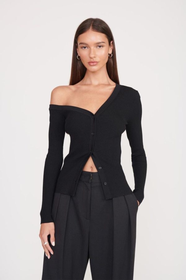 The Craftsman Sweater is our chic update to a classic fitted cardigan. This style is an off-one-shoulder button up cardigan.