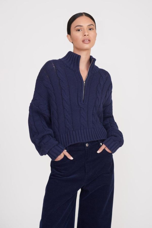 A cable knit update to our best-selling sweater. This style is made from a chunky cotton knit with half zip detail at the front.