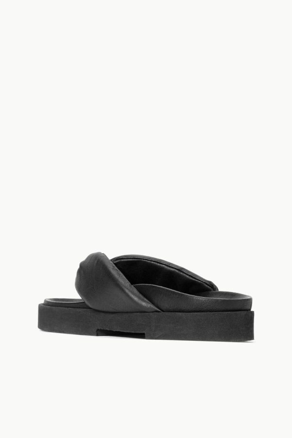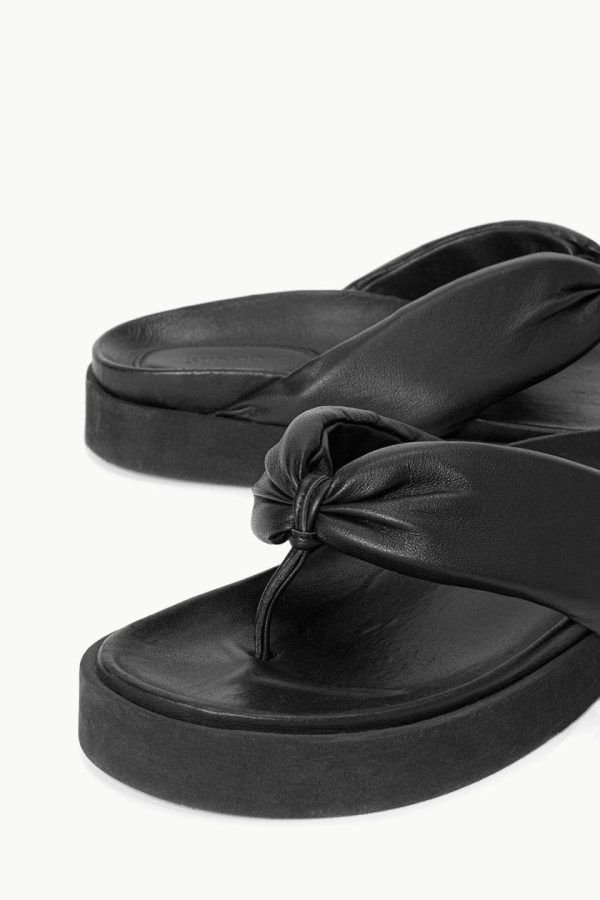 A chunky platform sandal with puff fill upper, the Dahlia features a thong toe construction and is made out of a soft nappa leather.