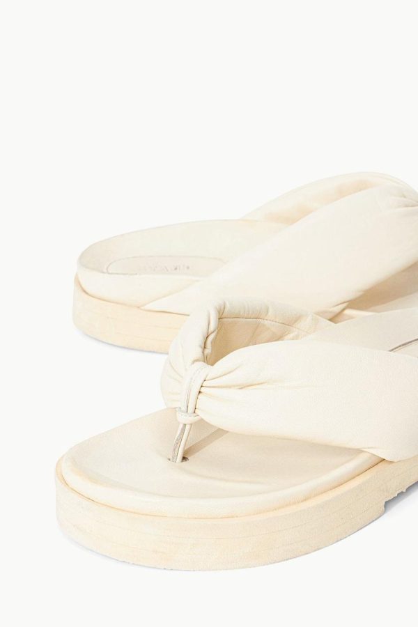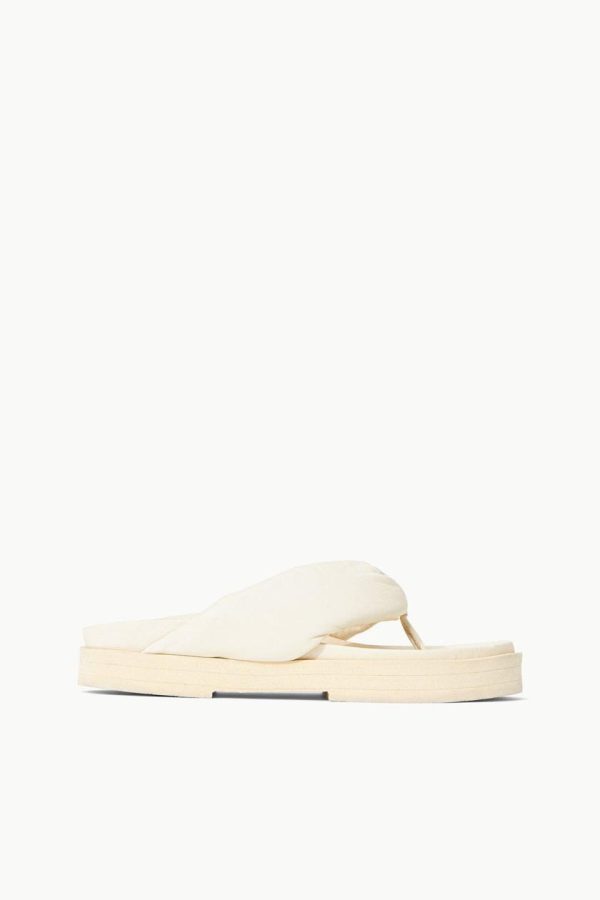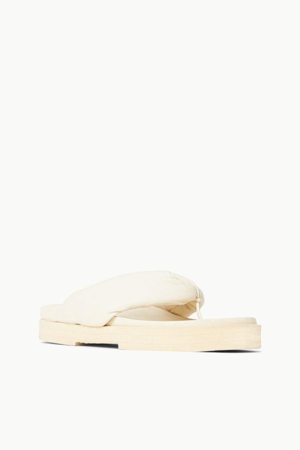 A chunky platform sandal with puff fill upper, the Dahlia features a thong toe construction and is made out of a soft nappa leather.