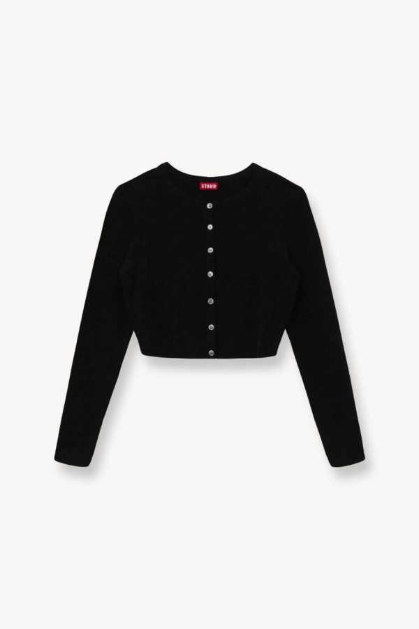 The Deanna Sweater is a cropped cashmere cardigan, a perfect layering piece for the season. The cardigan features a crewneck and button detail.