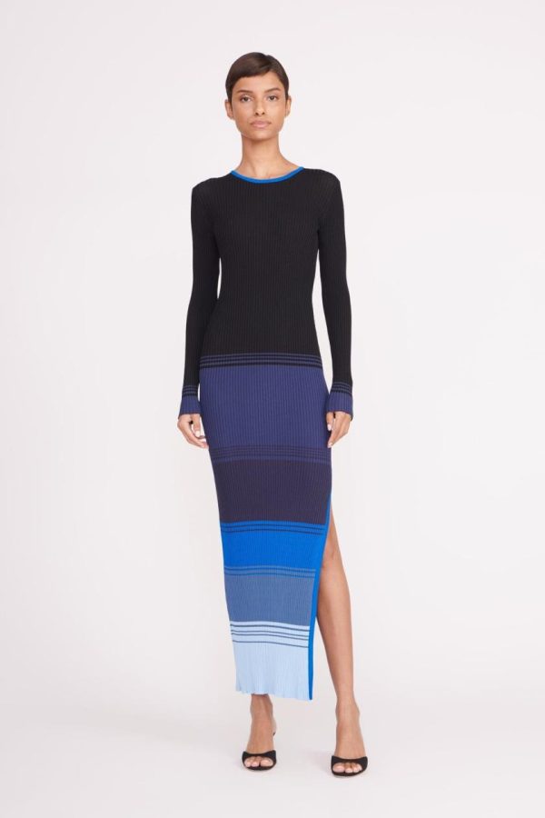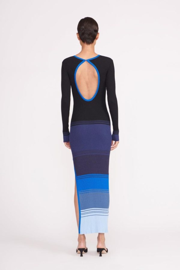 The Edna is a long sleeve maxi dress made out of a fitted compact knit fabric. This dress features a back cutout detail and side slit.