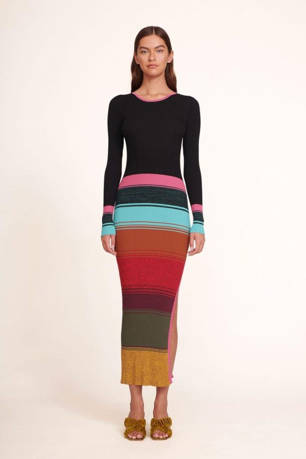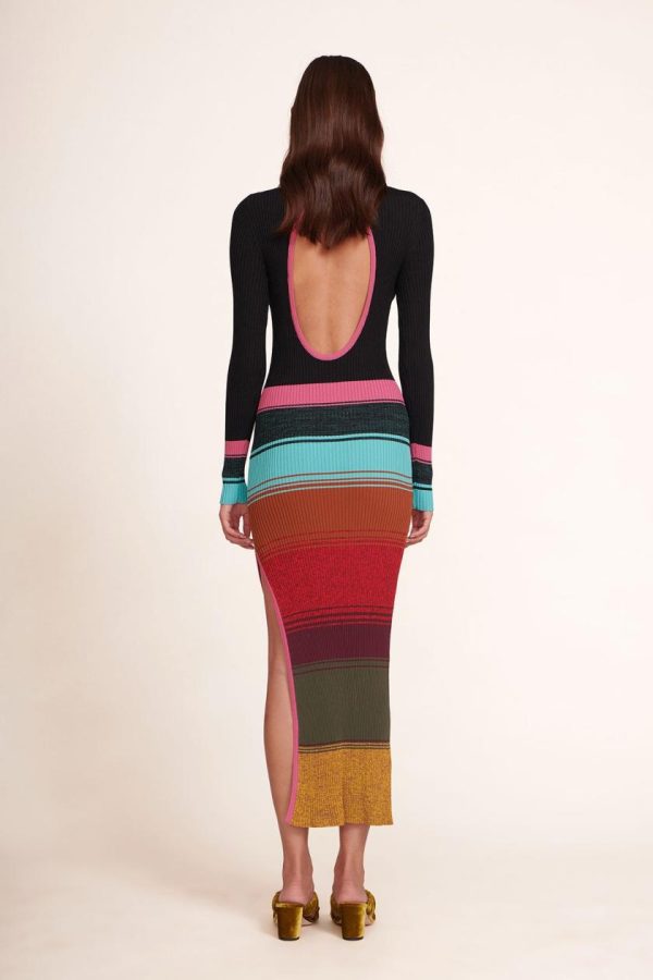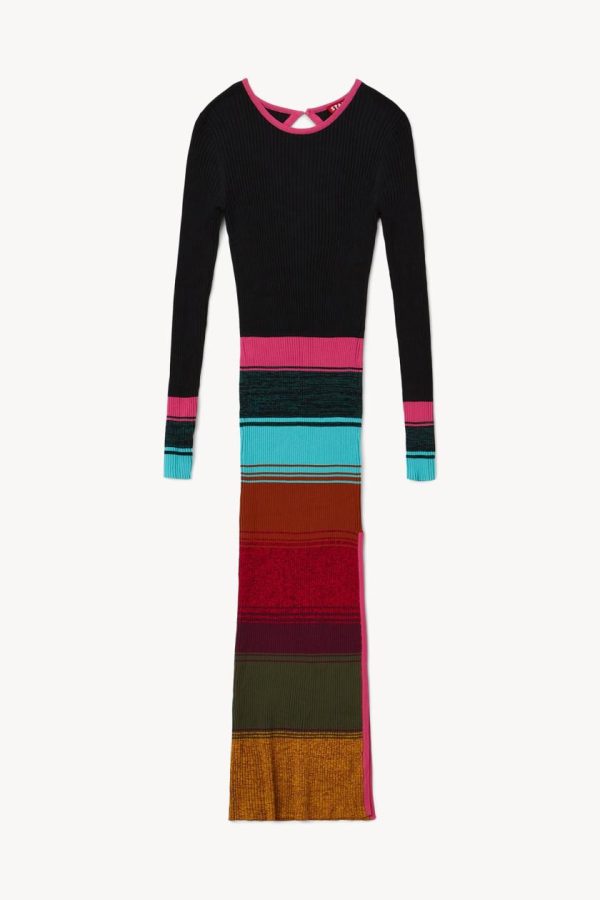 The Edna is a long sleeve maxi dress made out of a compact knit fabric. This dress features a back cutout detail and side slit.