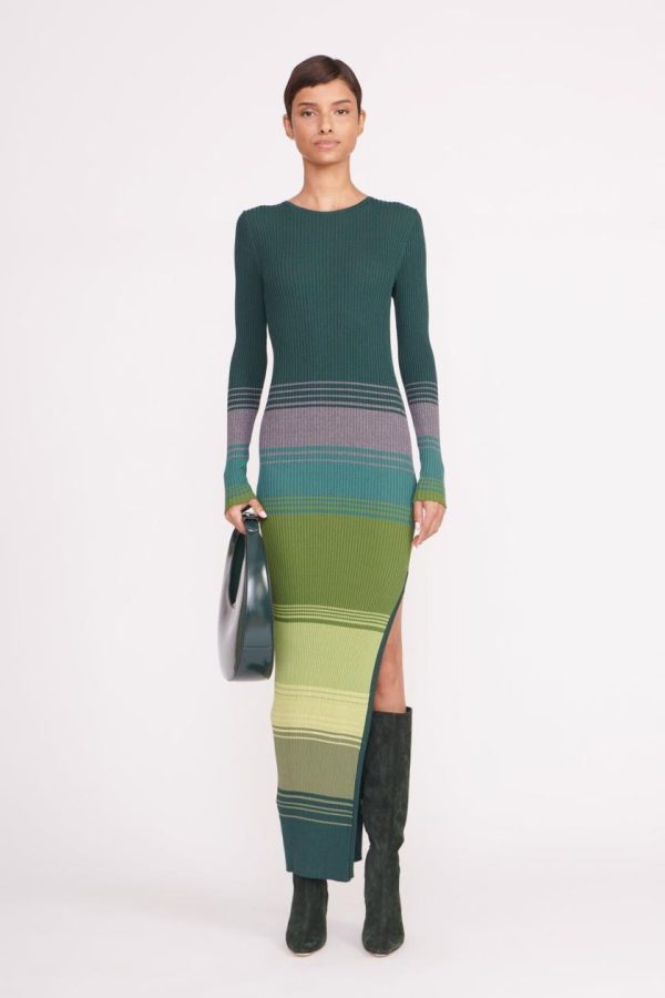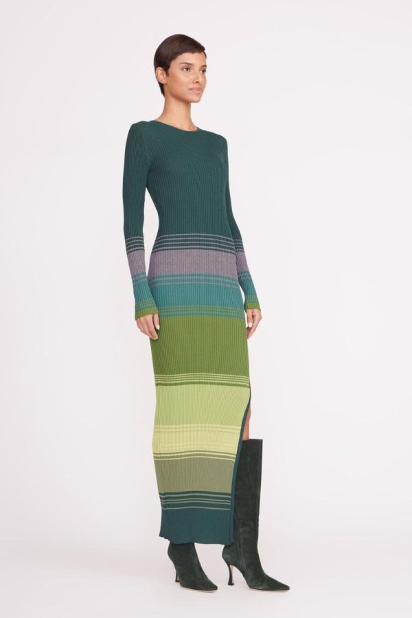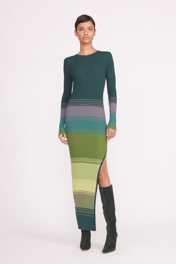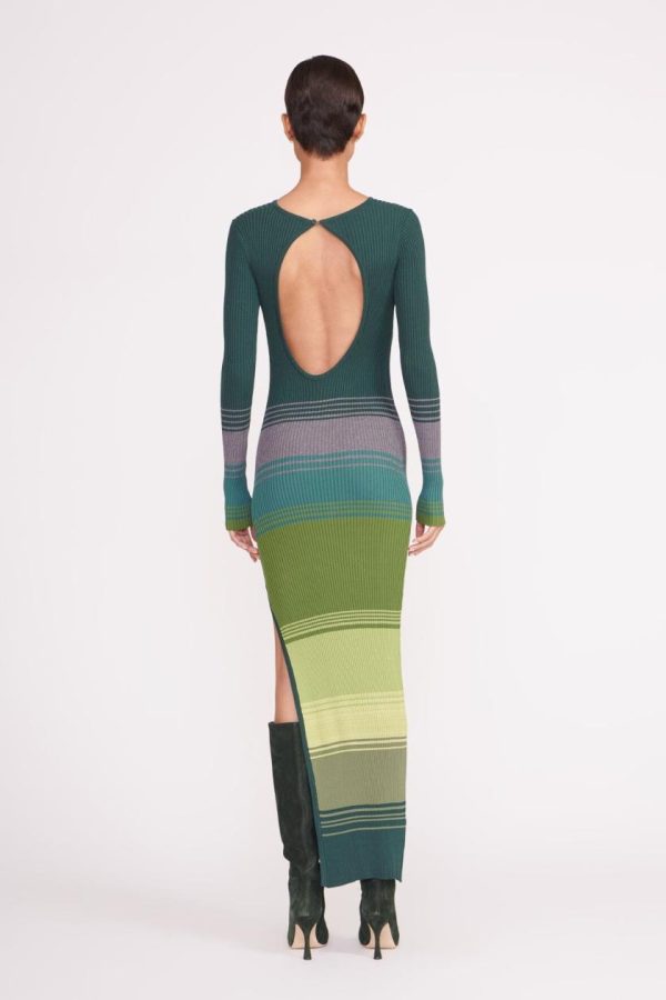 The Edna is a long sleeve maxi dress made out of a fitted compact knit fabric. This dress features a back cutout detail and side slit.