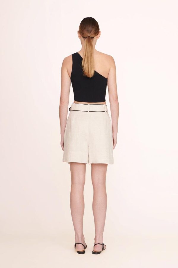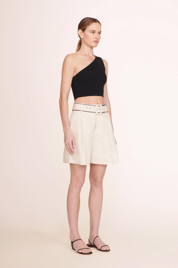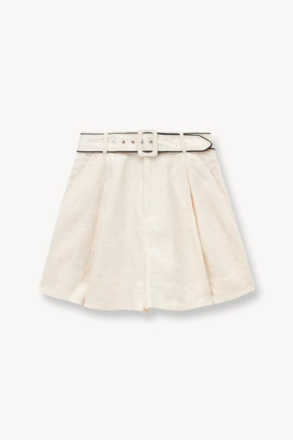 A wide leg bermuda short, the Colin features an adjustable linen buckled belt and is made out of linen.