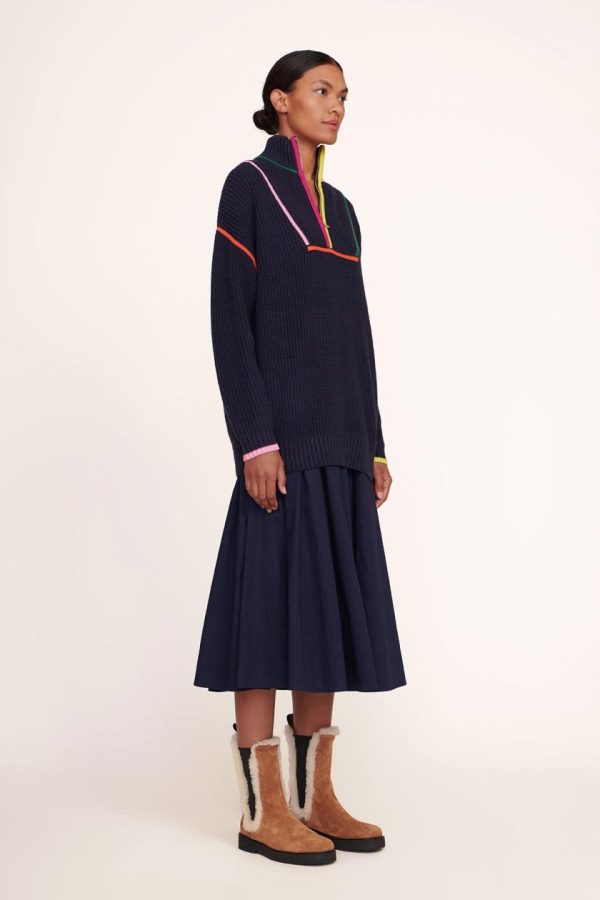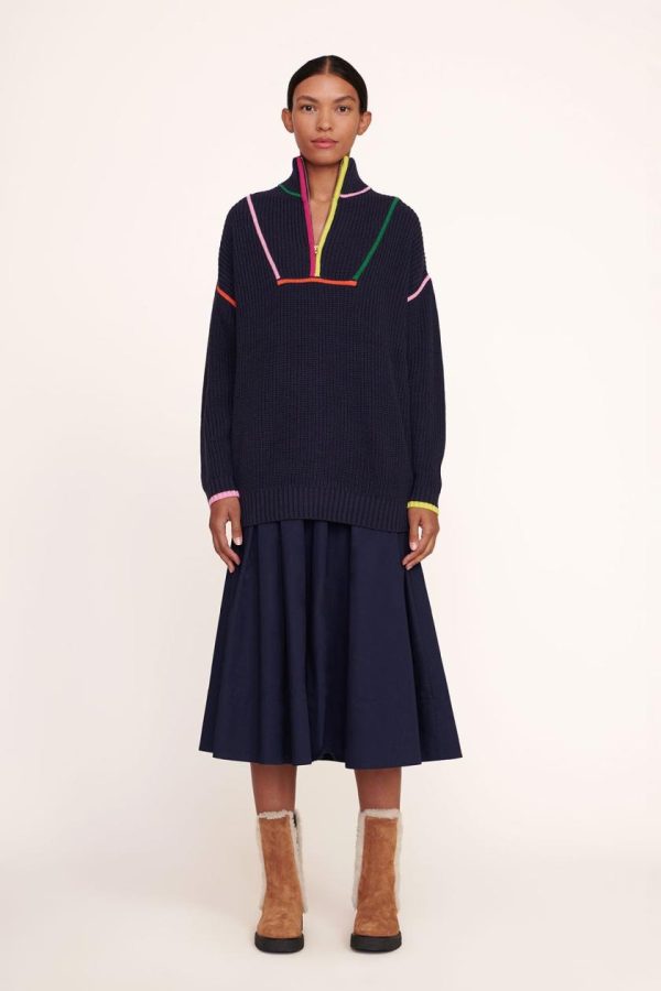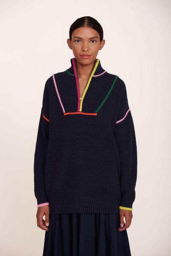 Our chunky cotton knit Hampton Sweater is an oversized boyfriend-style sweater in bright, colorful patterns. This style features a half-zip detail at the front