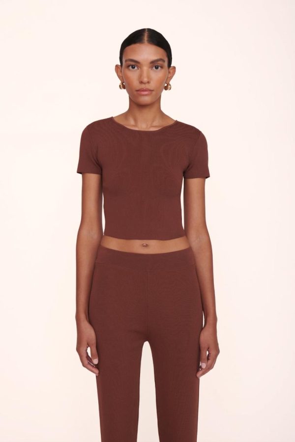 The Ila top is a cropped knit short sleeve tee shirt. A closet staple, pair back with any of our pants for an effortless look.