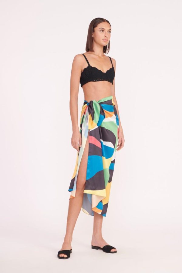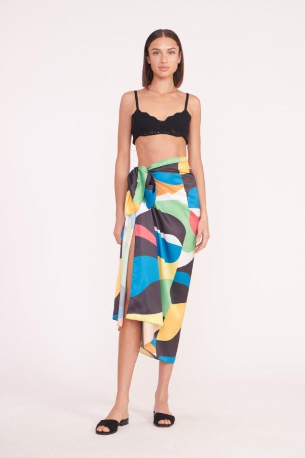 Self-tie wrap sarong skirt in our colorful marble wave print.