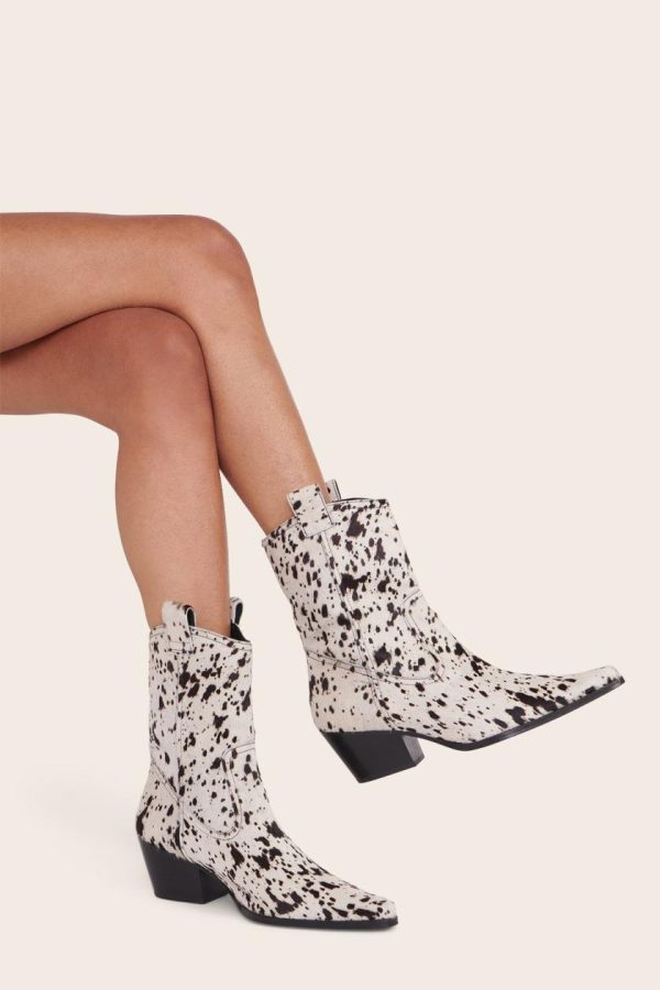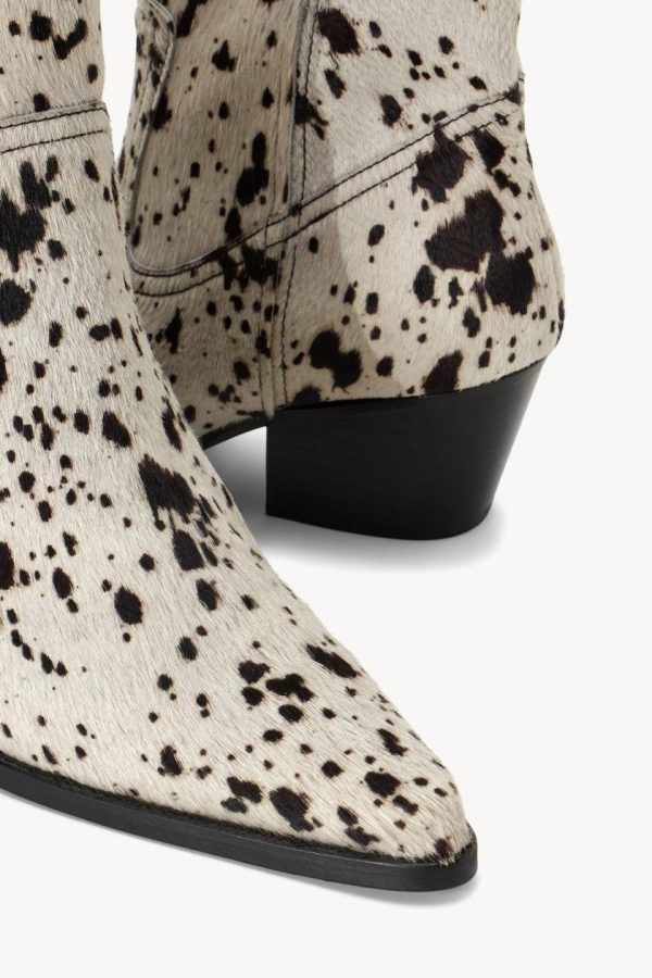 New for the season, the June is a true pointed toe cowboy boot made from haircalf. This style features western seaming and cuban heel.