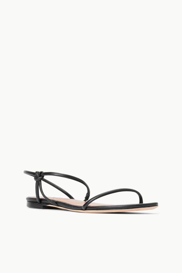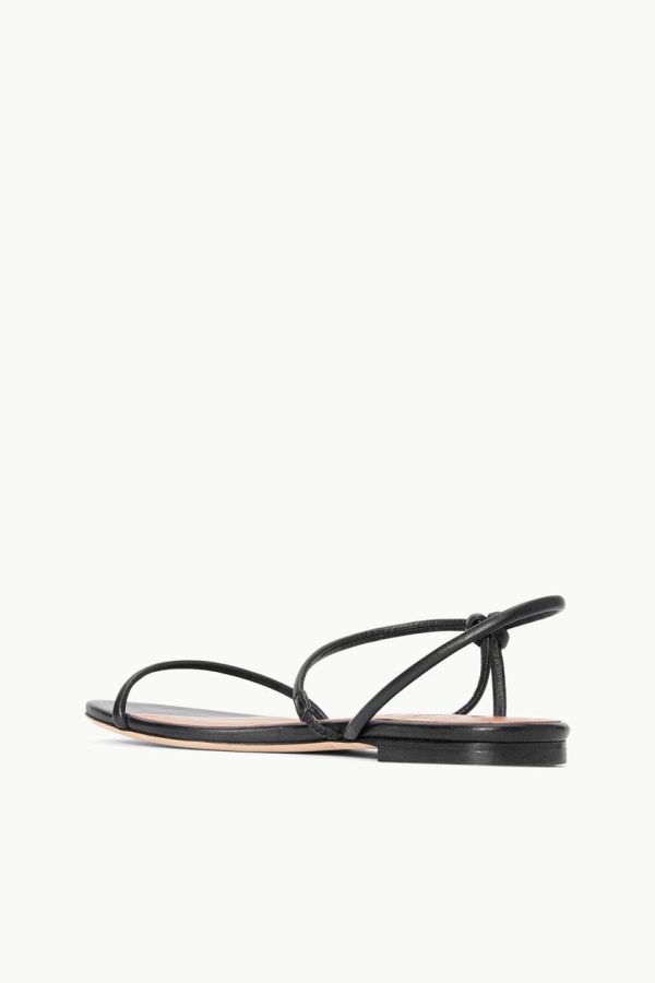 A flat sandal with tubular straps, the Laurel Sandal features a leather cord toe and ankle strap.