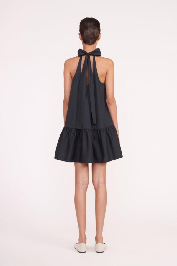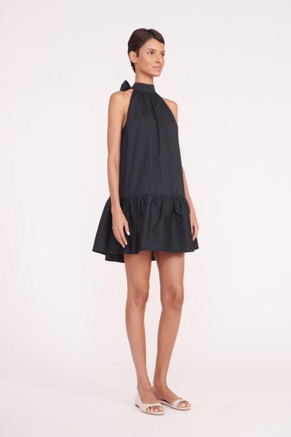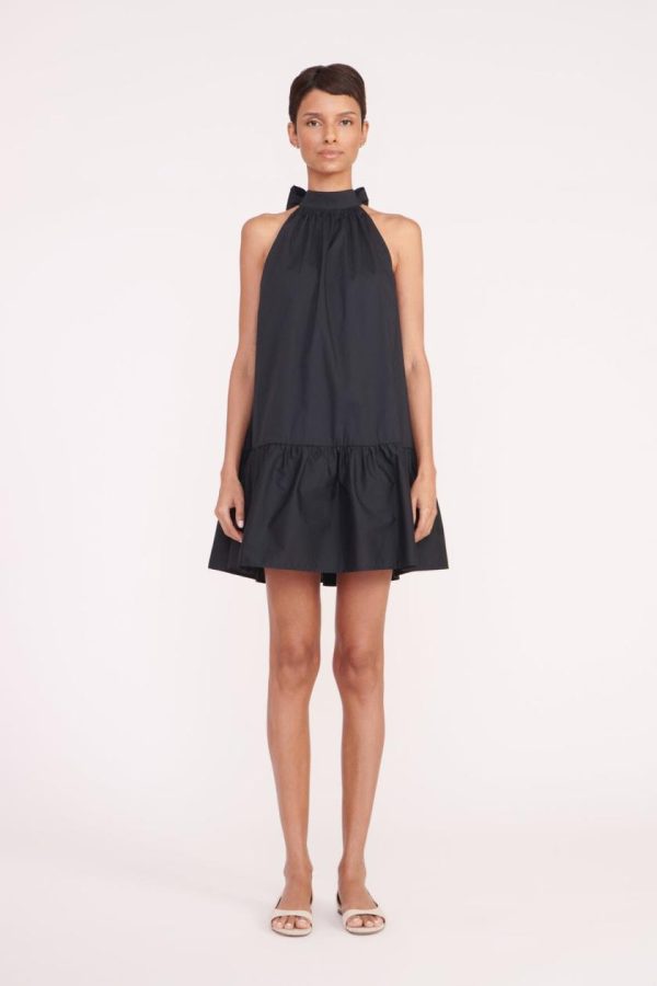 An easy a-line mini dress constructed out of cotton poplin, the Marlowe features a neck tie detail and peplum hem.