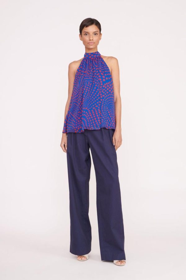A flowy halter top made from crinkle chiffon fabric, the Marlowe features an a-line silhouette and neck tie.