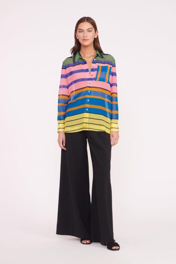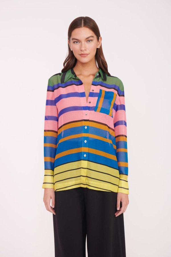 A long sleeve button down shirt with relaxed fit, the Martha Tunic features a front chest pocket and cuffs at the sleeve.
