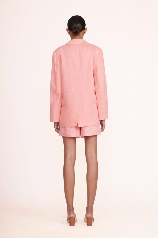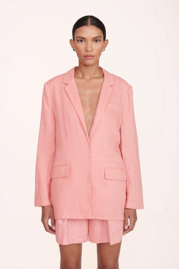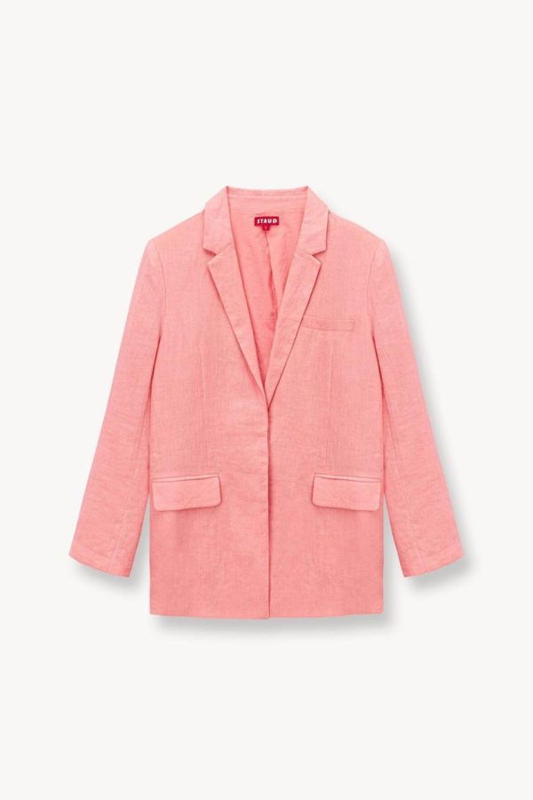 New for the season, the Maxwell Blazer is a structured linen jacket with a left chest pocket, two front hip pockets and and features a two-button closure.
