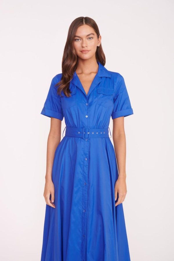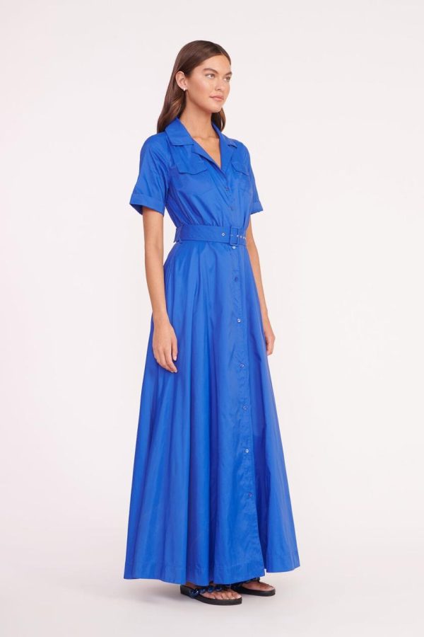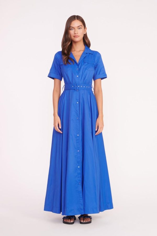 The Millie is a full length dress made out of our sustainable recycled tissue nylon. This dress features two front pockets, a button down front and matching belt.