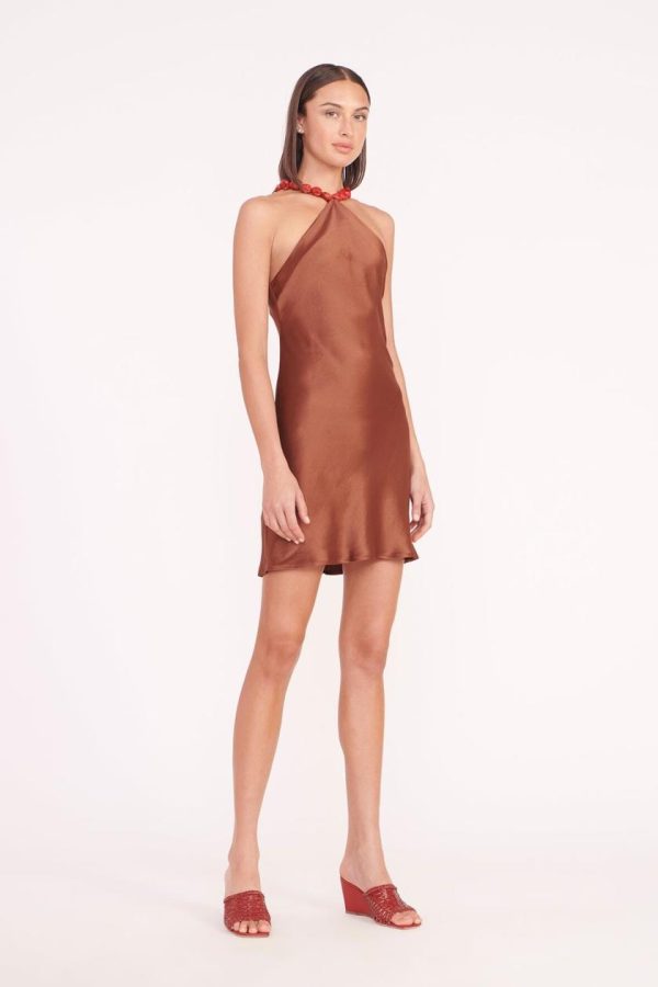 A halter neck slip gown crafted from a drapey satin fabric, the Mini Cadence features beaded strap details and fitted silhouette
