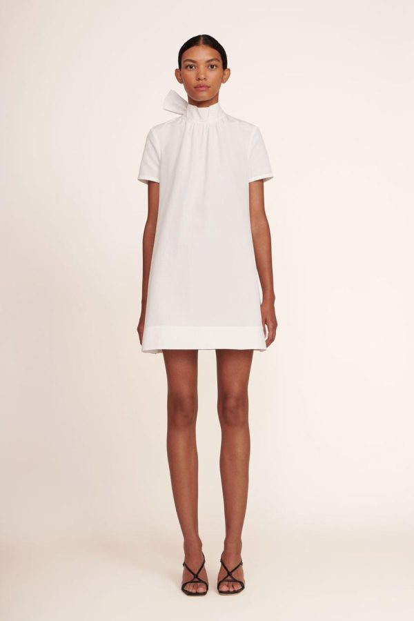 The Mini Ilana is a high neck mini dress with a scoop back and functional, self-tie bow collar. Constructed out of grosgrain fabric, this dress is the perfect statement piece for any occasion.