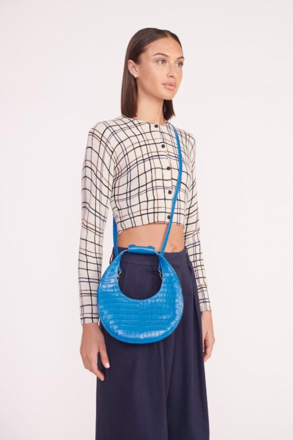 The Mini Moon Bag is an update to our classic crescent moon shape in croc embossed leather with inner suede lining and a magnetic closure to hold your essentials. This bag comes with a removable crossbody strap.