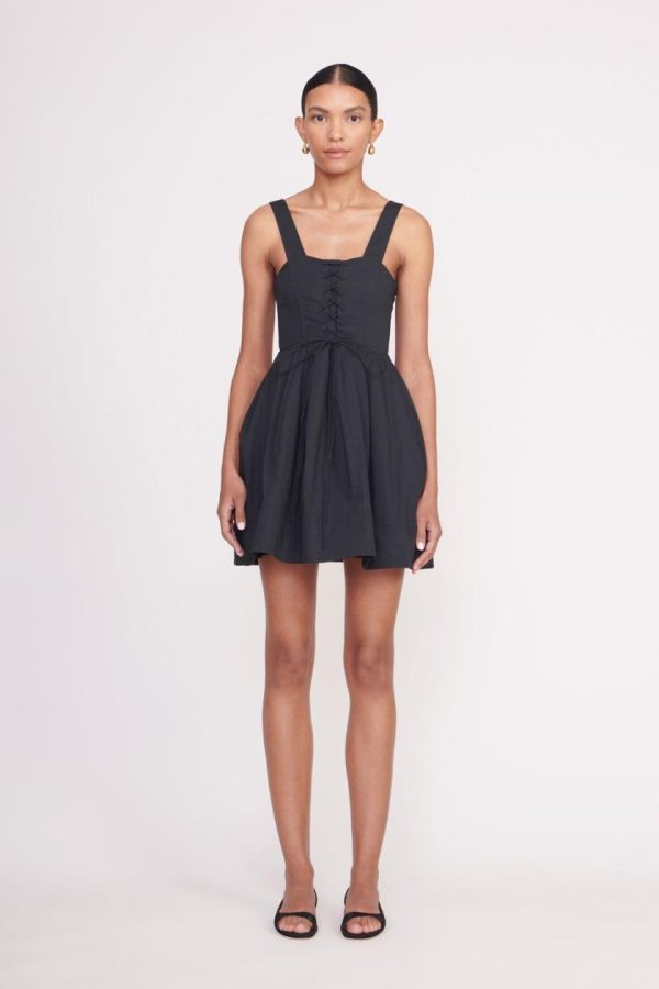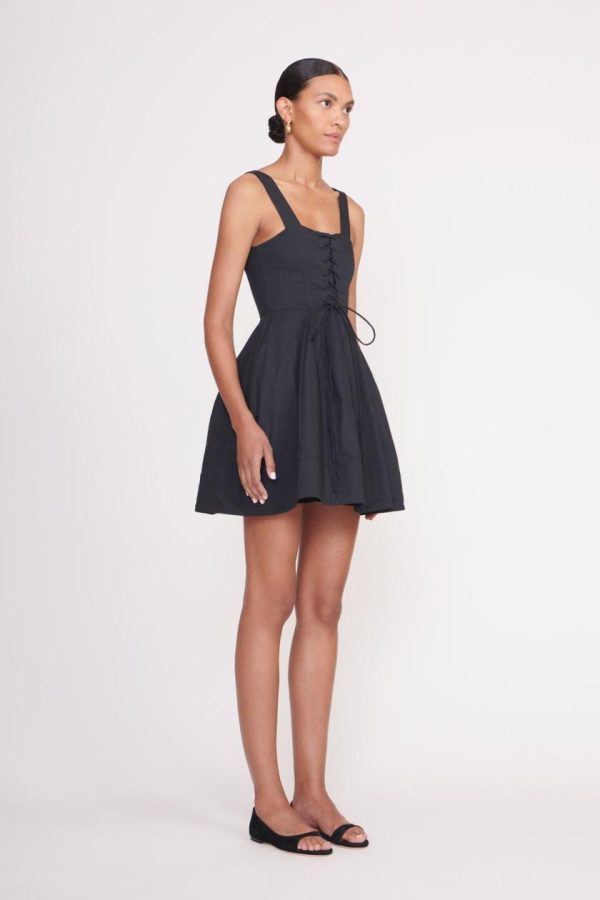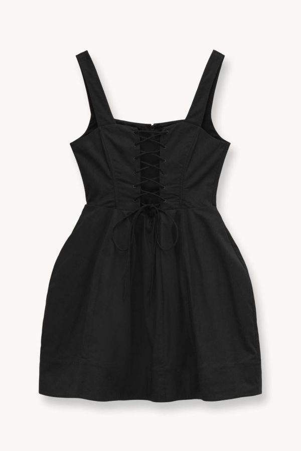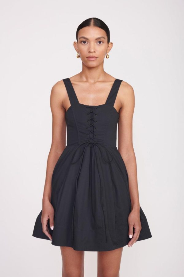 New for the season in stretch poplin, the Mini Sutton is a babydoll style dress with lace up corset detail.