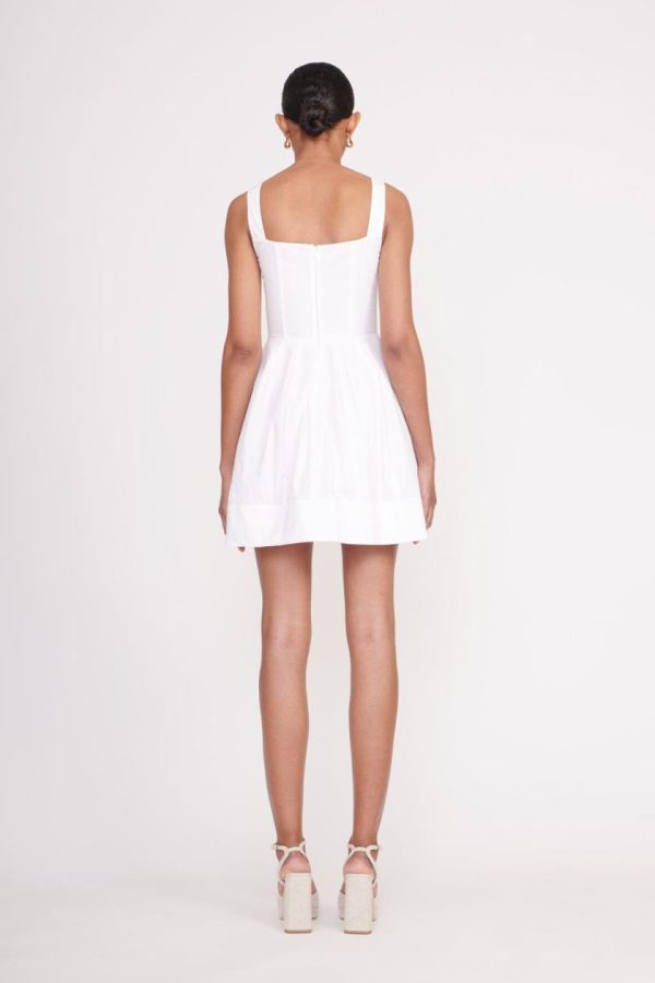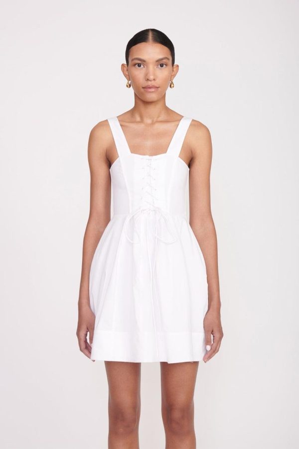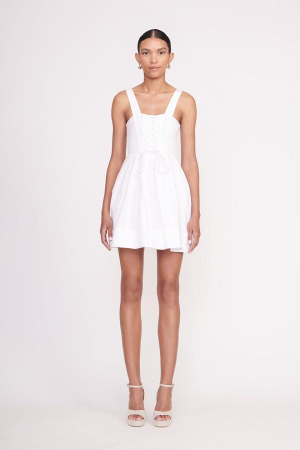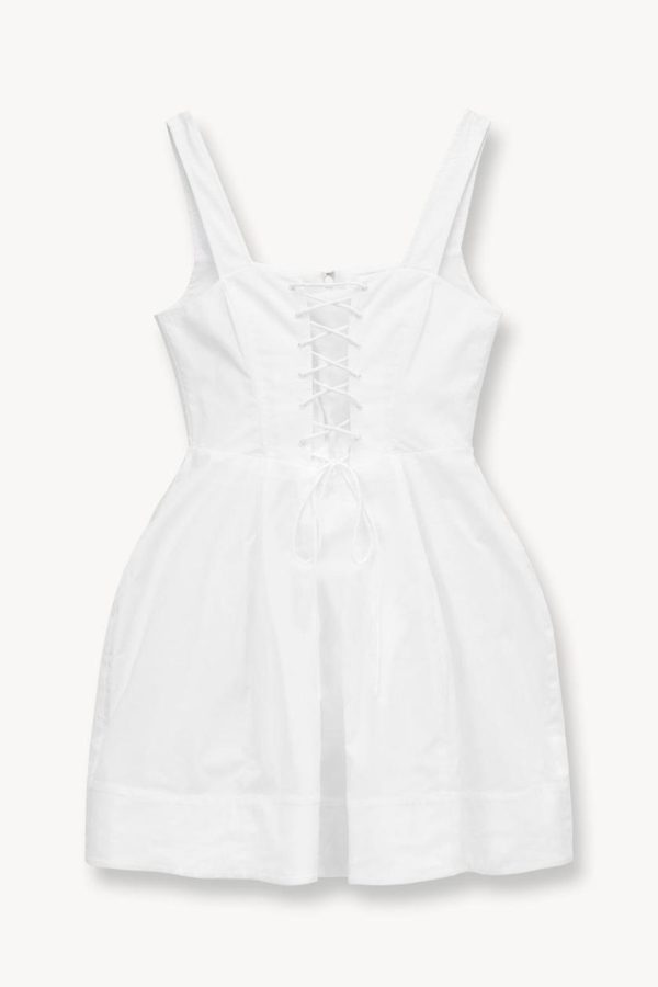 New for the season in stretch poplin, the Mini Sutton is a babydoll style dress with lace up corset detail.