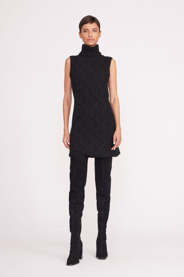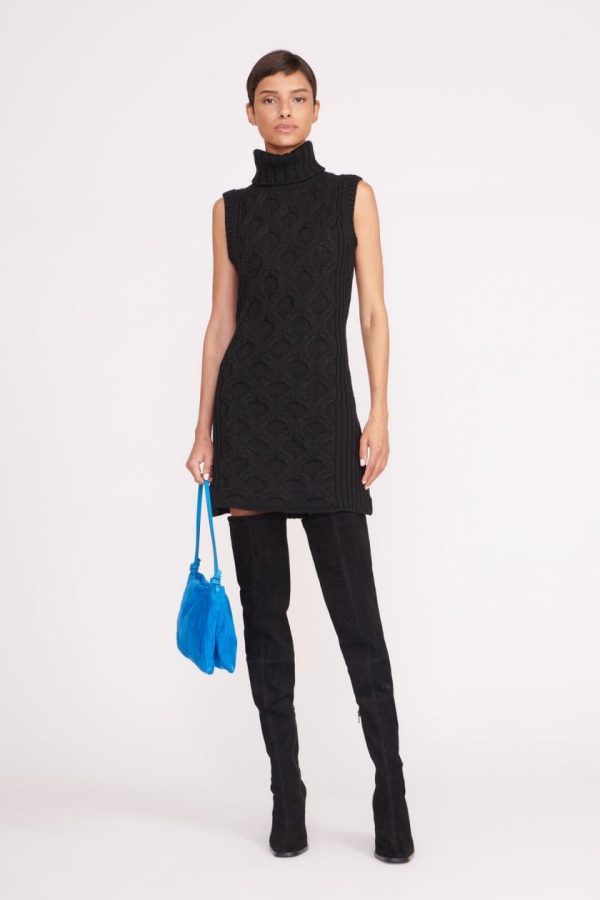 A mini sweater dress in a honeycomb cable knit, the Mod Dress is the perfect dress to layer under a coat with knee-high boots. The Mod Dress features a turtleneck and a sleeveless body.